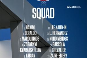 前锋:7-克瓦拉茨赫利亚、9-贡萨洛-拉莫斯、10-登贝莱、14-杜埃、19-李刚仁、29-巴尔科拉、49-姆巴耶