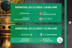 体育资讯11月6日讯 德国杯1/8决赛各场开球时间公布,12月3日4点勒沃库森vs多特蒙德,4日3点45柏林联合vs拜仁。